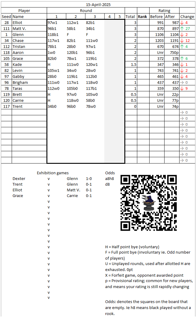 We had a great turnout this week with FOUR brand new players! Welcome Carrie, Brett, Trent, and Aaron! 16 players total. Three rounds were not quite enough to provide a clear winner, so Matt V. and Elliot had a tiebreak match after the tournament and Matt prevailed! Congratulations!